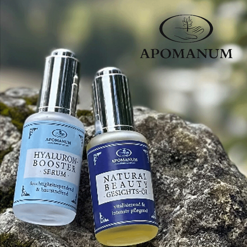 Apomanum hat mit dem Natural Beauty Gesichts-Öl, dem Hyaluron-Booster Serum und dem Gesichts-Tonikum nun drei neue natürliche Gesichtsprodukte entwickelt, die pflegend und feuchtigkeitsspendend wirken, die Haut mit wertvollen natürlichen Inhaltsstoffen versorgen und gut gegen äußere Einflüsse schützen können.