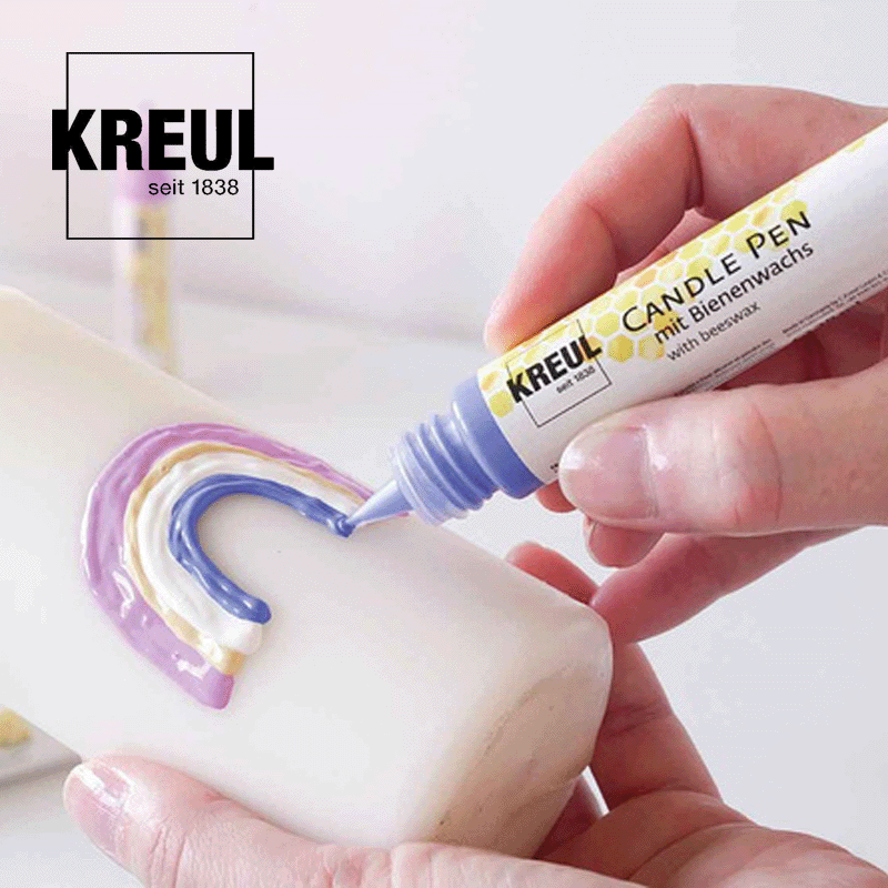 Das Gestalten von Kerzen mit dem KREUL Candle Pen macht glücklich, denn es ist unkompliziert. Einfach loslegen und durch Tupfen und Vermalen schicke Designs ausarbeiten. Der Pen eignet sich perfekt, um zuhause eine wohlige Atmosphäre entstehen zu lassen. Und das ganz sanft: Die Rezeptur dieser KREUL Candle Pens wurde mit natürlichem Bienenwachs veredelt. Selbstverständlich wird die Kerzenfarbe fair und sicher in Deutschland produziert. Für eine Qualität, auf die sich Kreative verlassen können. Eine Verpackungseinheit enthält 1 Stück.