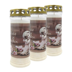 Diese MEMORIAM-Motivkerzen mit großer symbolischer Bedeutung sind ideal für Grabstätten. Sie brennen gleichmäßig, geruchsneutral und sauber, mit einer Brenndauer von ca. 4 Tagen. Sie haben einen Ölgehalt von 30% und sind in Deutschland hergestellt. Jede Kerze hat einen Durchmesser von ca. 75 mm und eine Höhe von ca. 170 mm. Verpackungseinheit: 3 Stück.