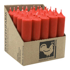 Diese klassischen Stabkerzen der KERZENFARM HAHN sind durchgefärbt, verbrennen rückstandsfrei und gelten als gesundheitlich unbedenklich. Die Brenndauer pro Stabkerze beträgt ca. 4 Stunden. Die Stabkerzen dieser Kerzenmanufaktur entsprechen den RAL-Empfehlungen und sind zu 100% Made in Germany. Das Brennverhalten ist gleichmäßig und ruhig mit einem warmen Kerzenlicht und einer schönen Leuchtwirkung. Ihr Abbrand ist rußarm. Der Name „KERZENFARM HAHN“ steht seit jeher für Kerzen von höchster Qualität: Ein Großteil der Kerzen wird mit viel Liebe zum Detail von Hand gefertigt. Diese Stabkerzen haben einen Durchmesser von ca. 22 mm und eine Höhe von ca. 100 mm. Eine Verpackungseinheit enthält 25 Stück.