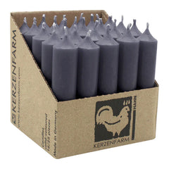 Diese Paraffin-Stabkerzen der KERZENFARM HAHN sind durchgefärbt, RAL-zertifiziert und in verschiedenen Farben erhältlich. Sie haben ein gleichmäßiges, ruhiges Brennverhalten mit einem warmen Kerzenlicht. Der Durchmesser pro Stabkerze beträgt ca. 22 mm, die Höhe ca. 100 mm. Jede Packung enthält 25 Kerzen mit je ca. 4 Stunden Brenndauer.