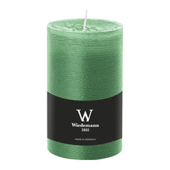 Stumpenkerze aus Paraffin, Apfelgrün, Marble Rustik, Wiedemann, 130/78 mm, Brenndauer ca. 63h, durchgefärbt