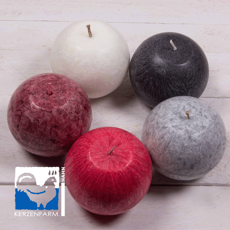 Diese klassischen Kugelkerzen aus Stearin der KERZENFARM HAHN sind in Deutschland aus 100% pflanzlichem Wachs hergestellt. Sie sind durchgefärbt, verbrennen rückstandsfrei und zeichnen sich durch eine besonders hohe Qualität aus. Die Brenndauer pro Kugelkerze beträgt ca. 25 Stunden. Die Kugelkerzen dieser Kerzenmanufaktur entsprechen den RAL-Empfehlungen und sind zu 100% Made in Germany. Das Brennverhalten ist gleichmäßig und ruhig mit einem warmen Kerzenlicht und einer schönen Leuchtwirkung. Ihr Abbrand ist rußarm. Der Name „KERZENFARM HAHN“ steht seit jeher für Kerzen von höchster Qualität: Ein Großteil der Kerzen wird mit viel Liebe zum Detail von Hand gefertigt. Diese Kugelkerzen haben einen Durchmesser von ca. 80 mm. Eine Verpackungseinheit enthält 1 Stück.