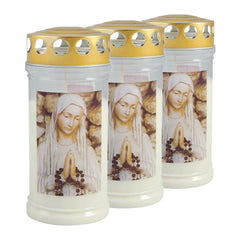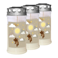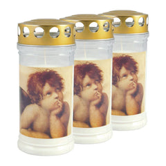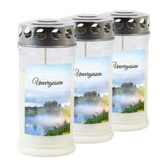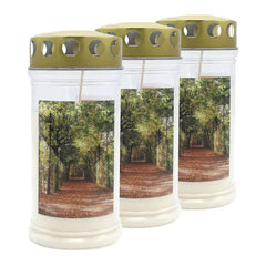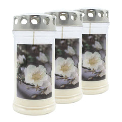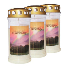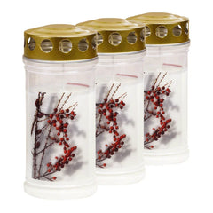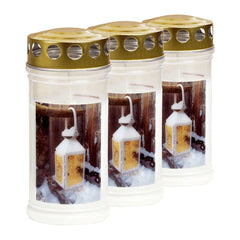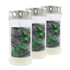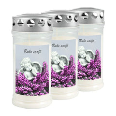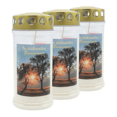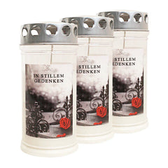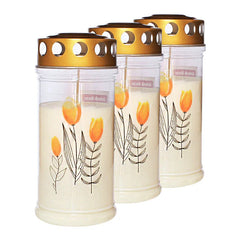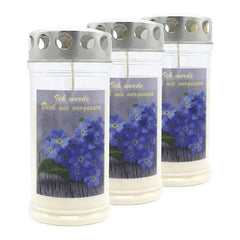 Diese JEKA-Motivkerzen mit Thermo-Doppeldeckel sind ideal für Grabstätten. Sie brennen gleichmäßig, geruchsneutral und sauber, mit einer Brenndauer von bis zu 4 Tagen. Als Witterungsschutz dient eine Kombination aus Innen- und Außendeckel. Jede Kerze hat einen Durchmesser von ca. 75 mm und eine Höhe von ca. 170 mm. Verpackungseinheit: 3 Stück.
