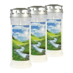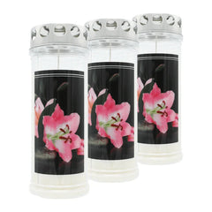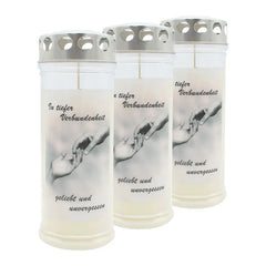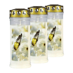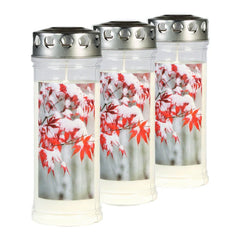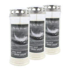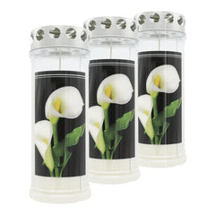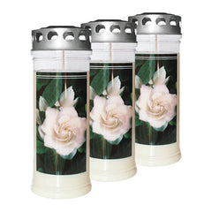 Diese JEKA-Motivkerzen mit Thermo-Doppeldeckel sind ideal für Grabstätten. Sie brennen gleichmäßig, geruchsneutral und sauber, mit einer Brenndauer von bis zu 7 Tagen. Als Witterungsschutz dient eine Kombination aus Innen- und Außendeckel. Jede Kerze hat einen Durchmesser von ca. 75 mm und eine Höhe von ca. 215 mm. Verpackungseinheit: 3 Stück.