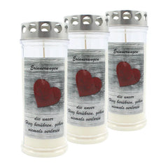 -Darauf achten, dass die Grabkerze gerade und stabil steht. Eine schiefe Position oder ein gekippter Docht kann die Kerzenhülle beschädigen und zu auslaufendem Wachs führen.