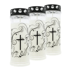 Diese hochwertigen JEKA-Motivkerzen „Kreuz-Ornament“ mit Thermo-Doppeldeckel haben mit ihrem schönen und ausdrucksstarken Motiv eine große symbolische Bedeutung und eignen sich für alle Arten von Grabstätten als zusätzliches Gestaltungselement. Sie haben einen Ölgehalt von 100% und brennen geruchsneutral und gleichmäßig sauber ab. Der Ausbrand ist auch bei niedrigen Temperaturen sehr gut. Sie haben einen Durchmesser von ca. 75 mm und eine Höhe von ca. 215 mm. Als Witterungsschutz dient eine Kombination aus Innen- und Außendeckel. Die Brenndauer pro Motivlicht beträgt bis zu 7 Tage. Eine Verpackungseinheit enthält 3 Stück.