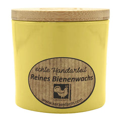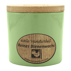 Diese Bienenwachskerzen der KERZENFARM HAHN im dekorativen transparenten Bügelglas sind von Hand hergestellt. Der Rohstoff besteht aus ausgesuchtem 100% reinem Bienenwachs. Dieses wird mit Spezialverfahren ohne Zusätze von Chemikalien gereinigt und unterliegt einer strengen Schadstoffkontrolle. Es ist frei von mechanischen Verunreinigungen. Entsprechend natürlich und rein sind die Farbe und der typische Bienenwachsduft. Die Brenndauer pro Bienenwachskerze beträgt ca. 20 Stunden. Die Bienenwachskerzen dieser Kerzenmanufaktur entsprechen den RAL-Empfehlungen und sind zu 100% Made in Germany. Das Brennverhalten ist gleichmäßig und ruhig mit einem warmen Kerzenlicht und einer schönen Leuchtwirkung. Ihr Abbrand ist rußarm. Der Name „KERZENFARM HAHN“ steht seit jeher für Kerzen von höchster Qualität. Diese Bienenwachskerzen haben einen Durchmesser von ca. 70 mm und eine Höhe von ca. 84 mm. Eine Verpackungseinheit enthält 1 Stück.